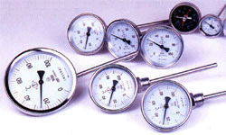 | 雙金屬溫度計是基于繞制成環(huán)性彎曲狀的雙金屬片組成。一端受熱膨脹時,帶動指針旋轉(zhuǎn),工作儀表便顯示出熱電勢所應的溫度值。 |
