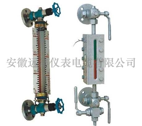 儀表上下閥門均裝有連接法蘭,法蘭接頭與被測容器焊接在一起而構成連通器,從而在玻璃管上可直接顯示容器內(nèi)介質(zhì)液位的高度。