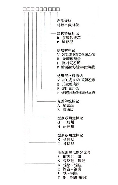 b)字母“X”表示延伸型補(bǔ)償導(dǎo)線(xiàn)(型別);