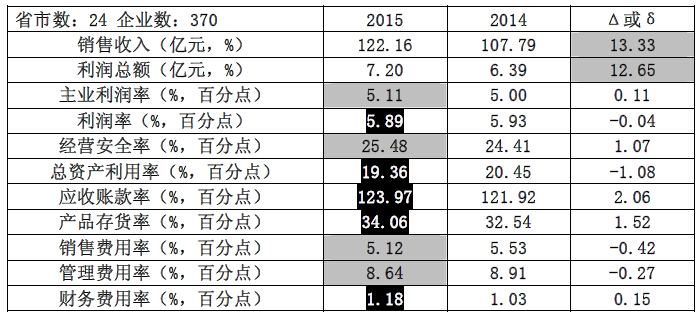 ——11濟運指標,銷售收入、利潤額、主業(yè)利潤率、營安全率、銷售費用率和管理費用率等6指標,余5指標差。銷售收入實122.16億元,比+13.33%,凈增14.36億元,12省市增幅高業(yè)均值。實利潤額7.20億元,比+12.65%, 13省市增幅高業(yè)均值。