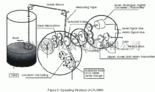 這個運動的浮動是點尺度傳播板(或計數(shù)器)齒輪機構。圖2。如果需要遠距離指示,機械測量轉換為4 - 20毫安輸出信號的電位計。